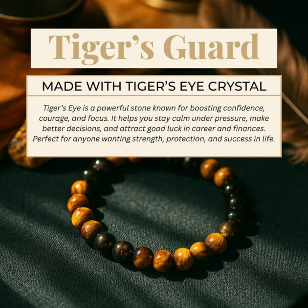 Unleash the courage within you with our striking Tiger’s Guard Bracelet. Handcrafted with genuine tiger’s eye stones, this powerful piece is more than just jewelry. It’s a shield of confidence and protection. Feel grounded, focused, and ready to face life’s challenges with the bold energy of tiger’s eye by your side.